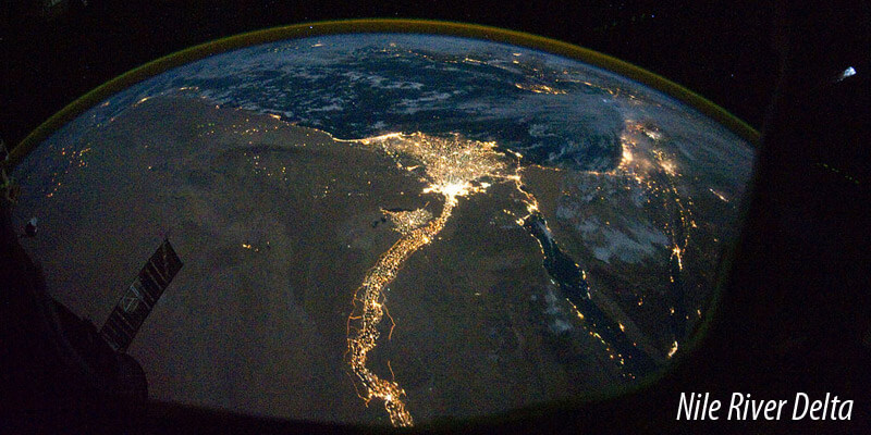 The Nile Delta is found in Northern Egypt where the river spreads out forming its distributaries before discharging into the Mediterranean Sea. Stretching from Alexandria to Port Said, the delta covers an entire 240 kilometers of the coastline. Between north and south, the length of the Nile Delta is 160 kilometers. With these dimensions, it is one of the largest river deltas in the world, supporting a huge population.